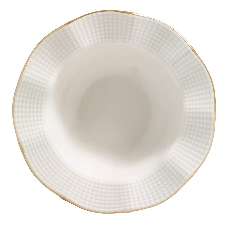 Servizio da tavola per 6 persone con ciotole - Porta un tocco di lussuosa eleganza nella tua sala da pranzo con il servizio di stoviglie Sophia di Kütahya Porselen. Questo servizio da tavola bianco, con i suoi bordi dorati, la goffratura geometrica e la forma originale, unisce il classico alla modernità. servizio completo per 6 persone 24 pezzi - bianco e oro chic - forma originale - porcellana di alta qualità