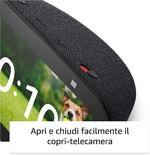 METTI ALEXA SUL TUO COMODINO: imposta sveglie e timer, rilassati con una playlist tranquilla, inizia la giornata con una routine che accende le luci compatibili, controlla facilmente il calendario o il meteo, usando solo la tua voce. PICCOLE DIMENSIONI, MIGLIORI PRESTAZIONI AUDIO: ascolta la tua musica o i tuoi podcast preferiti, guarda le serie TV che ami e molto altro su Amazon Music, Spotify, Prime Video o altri servizi, ora con bassi ancora più profondi e voci più nitide. Questo dispositivo è dotato di uno schermo da 5,5’’, per guardare a colpo d’occhio serie TV, titoli di canzoni e molto altro. LA TUA CASA GESTITA IN TUTTA COMODITÀ: controlla i dispositivi per Casa Intelligente, come lampadine e termostati, anche quando non sei in casa. VEDI ANCORA DI PIÙ CON LA VIDEOCAMERA INTEGRATA: controlla come sta la tua famiglia, i tuoi animali domestici e molto altro con la videocamera integrata. Effettua chiamate Drop In quando non sei a casa o monitora la porta d’ingresso dal tuo Echo Show 5, grazie ai videocitofoni compatibili. UTILIZZA LE TUE FOTO COME SFONDO: quando il dispositivo non è in uso, grazie ad Amazon Photos le tue foto possono scorrere sullo schermo del dispositivo. I membri Prime possono archiviare illimitate foto nel Cloud. SEMPRE IN CONTATTO CON LE VIDEOCHIAMATE: grazie alla telecamera da 2 MP puoi chiamare amici e familiari che possiedono un dispositivo Echo dotato di schermo o l’App Alexa, oppure fare un Annuncio verso gli altri dispositivi compatibili in casa. PROGETTATO PER TUTELARE LA TUA PRIVACY: Echo è progettato con diversi elementi per la protezione e il controllo della privacy, tra cui un apposito pulsante per disattivare i microfoni e il copri-telecamera integrato.