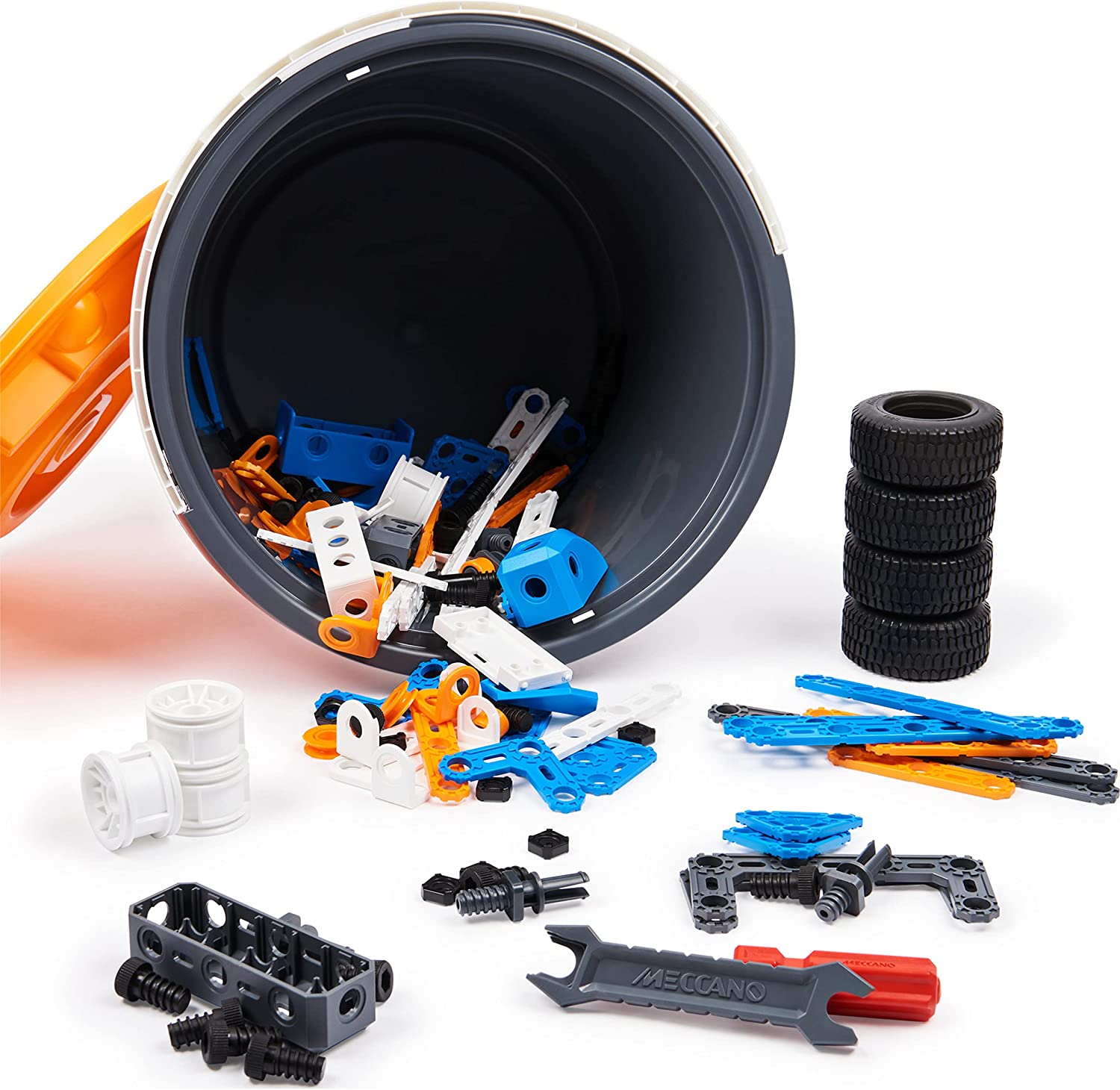 Meccano Junior, kit di costruzioni, secchiello da 150 pezzi per gioco creativo - dai 5 anni, non adatto a bambini che potrebbero ingerire i piccoli pezzi. KIT DI COSTRUZIONE PER CREAZIONI ILLIMITATE: il secchiello da 150 pezzi contiene tutto ciò di cui i giovani costruttori hanno bisogno per un gioco senza fine, tra cui 150 pezzi, 2 attrezzi e istruzioni per 3 modelli - PEZZI E ATTREZZI FACILI DA USARE: i pezzi e gli attrezzi riprogettati rendono più facile che mai per i bambini costruire le proprie creazioni! I dadi si attaccano direttamente ai pezzi per bloccarli; i bulloni li tengono assemblati per facilitare la costruzione - PERFETTO PER I COSTRUTTORI ALLE PRIME ARMI: quando i bambini assembleranno i pezzi, si sentiranno proprio come veri ingegneri! Man mano che acquisiscono fiducia in ogni costruzione, possono smontare e inventare le proprie creazioni - Il secchiello per gioco creativo da 150 pezzi Meccano Junior è un kit di costruzione STEAM. Ulteriori istruzioni di montaggio sono disponibili su Meccano.com. Include: 150 pezzi, 2 attrezzi, 1 secchiello di plastica, 1 guida per l'uso (per 3 modelli)