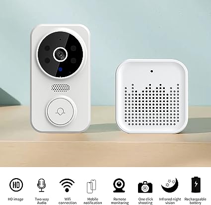Standby prolungato: nessun ciclo di smontaggio e ricarica. Batteria integrata agli ioni di litio ad alta capacità, standby prolungato. Il campanello è alimentato da una grande batteria integrata, non è necessario caricarlo frequentemente; e il campanello è dotato di alimentazione USB, facile e comodo da usare. Videochiamata: facile da gestire con gli ospiti in visita, quando qualcuno preme il campanello, il campanello invia una notifica al telefono e il proprietario può accedere all'interfaccia di conversazione video del telefono. Installazione portatile: può essere incollata e perforata. Supporta il supporto adesivo, non è necessario perforare, mentre supporta l'installazione del perforatore. Nessun collegamento, comodo e senza problemi. Capture Screen: archiviazione nel cloud, protezione di sicurezza. Quando un visitatore preme il campanello, può catturare l'immagine del visitatore e salvare la registrazione sul cloud, in modo che l'APP del cellulare possa visualizzare le foto precedenti in qualsiasi momento, il che è più sicuro e protetto. Videocamera wireless con campanello: supporta WiFi 2.4G e connessione APP, alta risoluzione 480P, per immagini e video più nitidi e maggiori dettagli. Audio bidirezionale: con microfono integrato, puoi vedere e parlare con i tuoi visitatori sempre e ovunque.