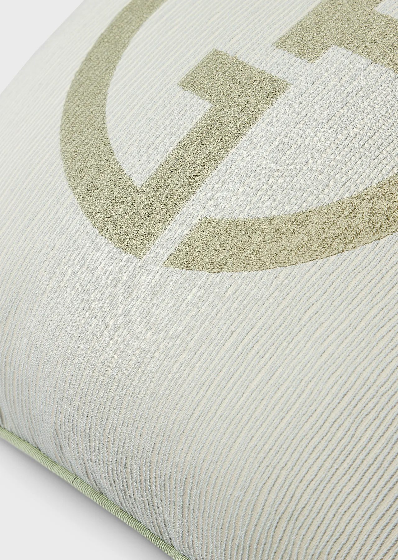 Armani: JANETTE Cuscino decorativo Il grande logo GA è la caratteristica principale del design della collezione Janette. Composizione 44% Viscose, 24% Cotton, 20% Polyester, 8% Silk, 4% Acrylic - Dimensioni: 40 x 40 cm - Imbottitura: Rollofill - MADE IN ITALY