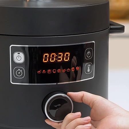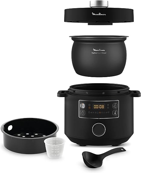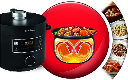 MULTICOOKER INTELLIGENTE: Il multicooker Moulinex Turbo Cuisine è la soluzione innovativa per cucinare piatti deliziosi in modo facile e veloce, dall'antipasto al dolce, dalla colazione alla cena. SPHERICAL COOKING BOWL: La pentola a pressione Moulinex Turbo Cuisine è dotata di tecnologia Spherical Cooking Bowl, che assicura una superficie riscaldata più ampia e una diffusione e circolazione ottimale del calore. INTERFACCIA INTUITIVA: Sfrutta un'unica manopola per selezionare il programma di cottura, regolare la temperatura e il tempo o impostare l'avvio posticipato. PENTOLA A PRESSIONE ELETTRICA: Con la tecnologia di cottura a pressione ultra rapida e la potenza da 915 a 1090 W, cucini fino a 3 volte più velocemente rispetto alla cottura con un accessorio da cucina tradizionale su gas o piastre elettriche. 10 PROGRAMMI AUTOMATICI: Grazie ai 10 programmi di cottura automatici, sostituisce almeno 7 elettrodomestici da cucina: Cottura in umido, Zuppe, Frittura, Cottura al forno, Sottovuoto e cottura lenta, Porridge, Yogurt e fermentati, Riscaldamento, Modalità Chef regolabile FUNZIONALITÀ: Cottura automatica senza bisogno di supervisione, avvio ritardato fino a 12 ore e mantenimento al caldo fino a 24 ore; il recipiente di cottura con rivestimento antiaderente è durevole e facile da pulire SICURA: Turbo Cuisine è dotata di 12 controlli di sicurezza, inclusi: sistema di rilascio della pressione sicuro, nessun contatto con il vapore, nessun rischio di bruciarsi