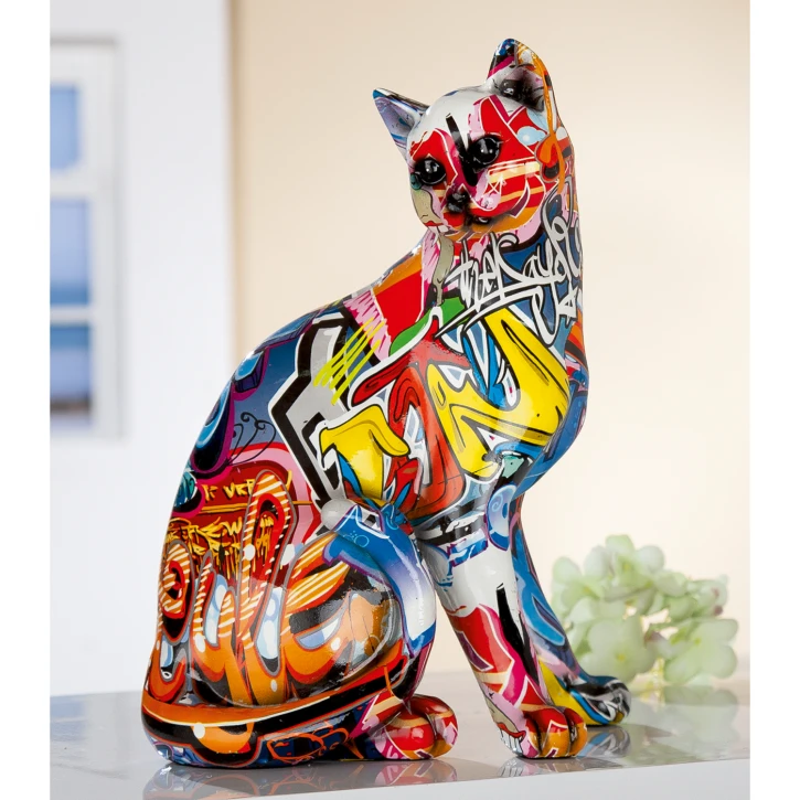 Oggetto decorativo Gatto Street Art - Sculrura in Resina sintetica - Multicolore. Larghezza: 25 cm - Altezza: 31 cm - Profondità: 18 cm - Peso: 2.68 kg