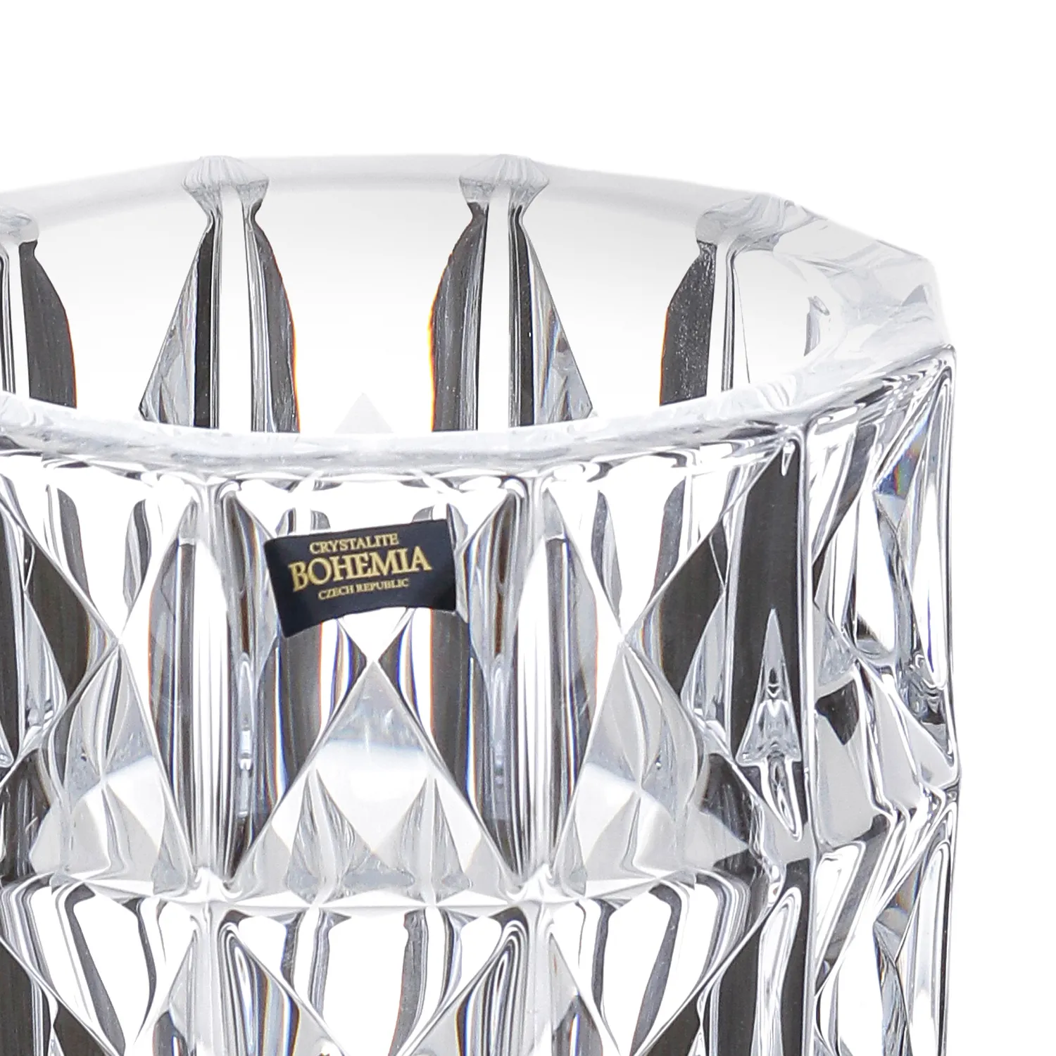 Vaso in cristallo di Bohemia, da 25,5 cm. Vaso in cristallo di Bohemia dalle linee aggraziate e delicate, un design ricercato per custodire una creazione floreale e valorizzarla con giochi di luce e riflessi eleganti: la superficie richiama l'effetto del diamante, donando un tocco di grazia ulteriore al vaso. Il suo stile raffinato lo rende adatto a qualsiasi tipo di arredamento, da quelli moderni a quelli classici. Il vaso può essere collocato su ogni superficie e mantiene una perfetta stabilità su qualsiasi materiale. Larghezza 13 cm - Altezza 25,5 cm - Profondità 13 cm - Peso 3,34 kg