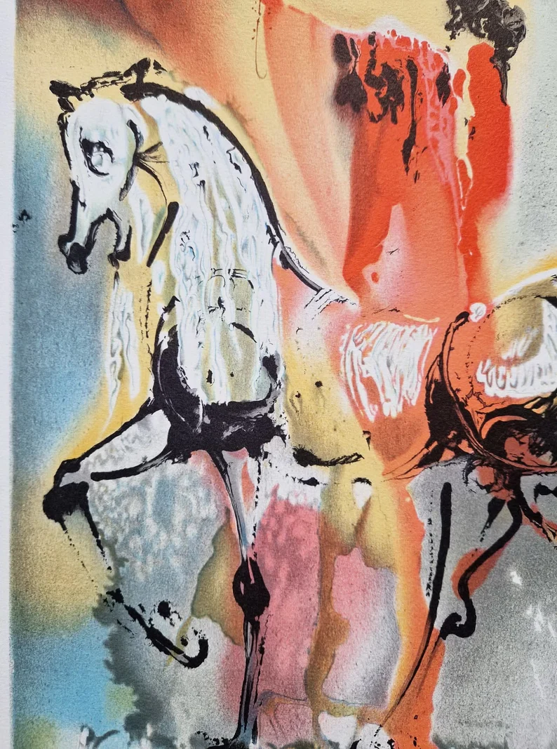 SALVADOR DALI - Le Chevalier Chretien. Larghezza: 36 centimetri - Altezza: 56 centimetri - TIPOLOGIA: Grafica - FORNITO DA: Salvador Dali - TITOLO: Le Chevalier Chrétien - TECNICA: Litografia a colori - CARTA: Buttenpapier - FORMATO CARTA: 560 x 365 mm - FORMATO IMMAGINE: 430 x 305 mm - ANNO DI realizzazione: 1983 - FIRMA: Timbro firmato - EDIZIONE: limitata a 5000 esemplari nel mondo
