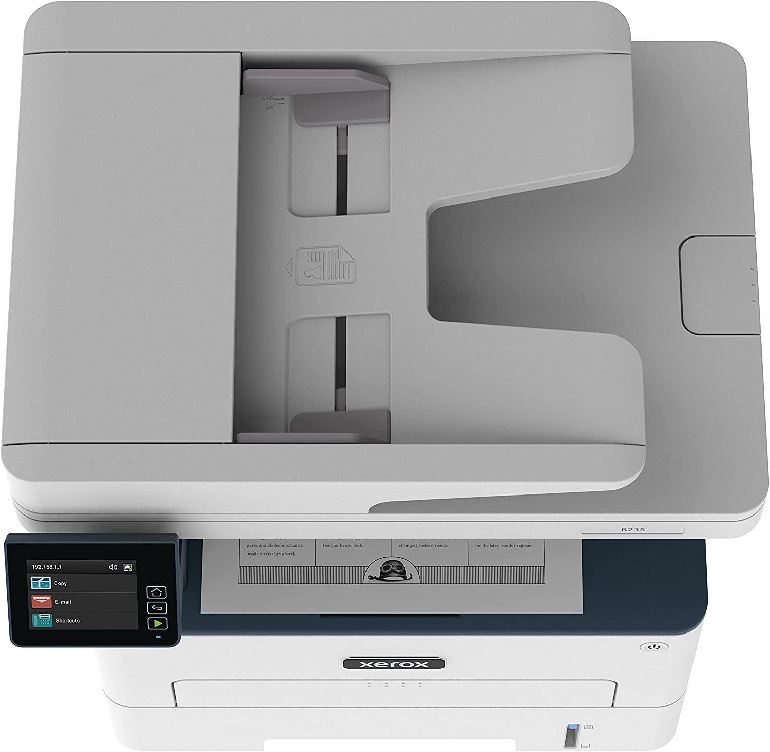 Xerox B235 Multifunzione Laser A4 -Copia - Stampa - Scansione - Fax, 34ppm, Bianco e Nero, Wireless con Stampa Fronte Retro, Pannello Touch a Colori. PRESTAZIONI AFFIDABILI: stampante wireless in bianco e nero, con velocità di stampa fino a 36 pagine Letter al minuto/34 pagine A4 al minuto, stampa fronte/retro automatica, capacità carta di 250 fogli e qualità dell'immagine ad alta risoluzione - CONVENIENZA E CONNETTIVITÀ: Wi-Fi integrato per Apple AirPrint, Mopria Print Service e Chromebook; inoltre, l'installazione è semplice il che significa che sei subito operativo RIMANI SICURO: le funzionalità di sicurezza vi proteggono dall'aumento delle minacce informatiche sempre più sofisticate salvaguardando l'accesso e proteggendo dati e documenti sensibili - INTELLIGENZA INTUITIVA: la semplicità aumenta la produttività con i driver di stampa Xerox e Xerox Print & Scan Experience, elimina le difficoltà di attività complesse come il raddrizzamento automatico, la scansione delle ricevute e il ritaglio automatico delle immagini - Tecnologia di connettività: ethernet
