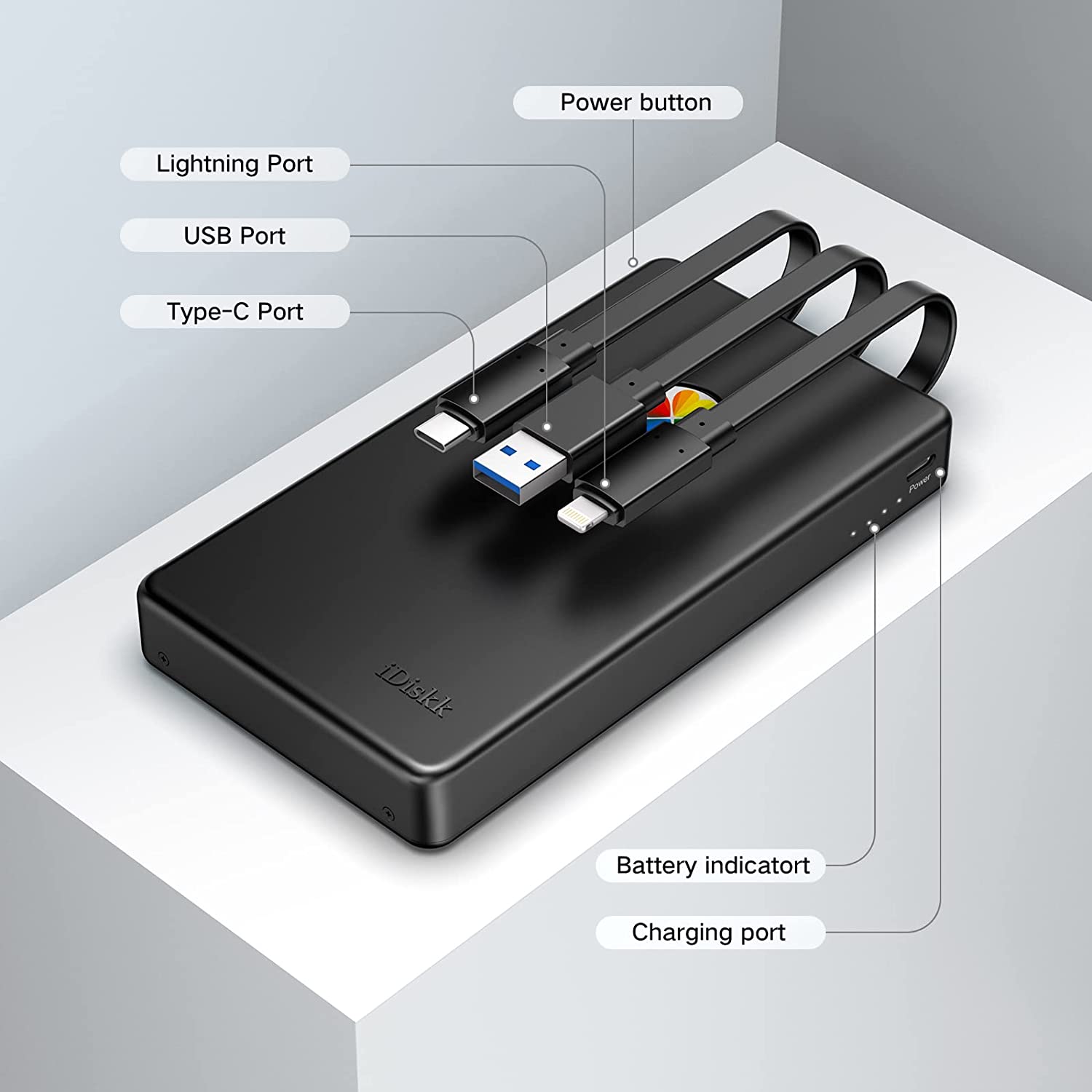 iDiskk Disco rigido esterno per iPhone, da 2 TB (2000 GB) certificato MFi con 3 cavi integrati Hard disk portatile, disco rigido USB-C per iPhone e iPad/PC e cellulari TYPE-C. USB 3.0, USB-C (TYPE-C) e cavo Lightning 3 per garantire che questo disco rigido iPhone sia compatibile non solo per iPhone 5/6/7/8/X/XR/XS MAX/11/12/12 Pro/13/13Pro/13Pro Max/14/14Pro/14Pro MAX, iPad Pro, ma funziona anche con dispositivi Android, TIPO-C telefoni Macbook e PC. I chip e I connettori con certificazione MFI garantiscono UN trasferimento dei dati più stabile e sicuro - Alluminio +ABS - Per iPhone e iPad (basati su porta lightning) è necessario scaricare