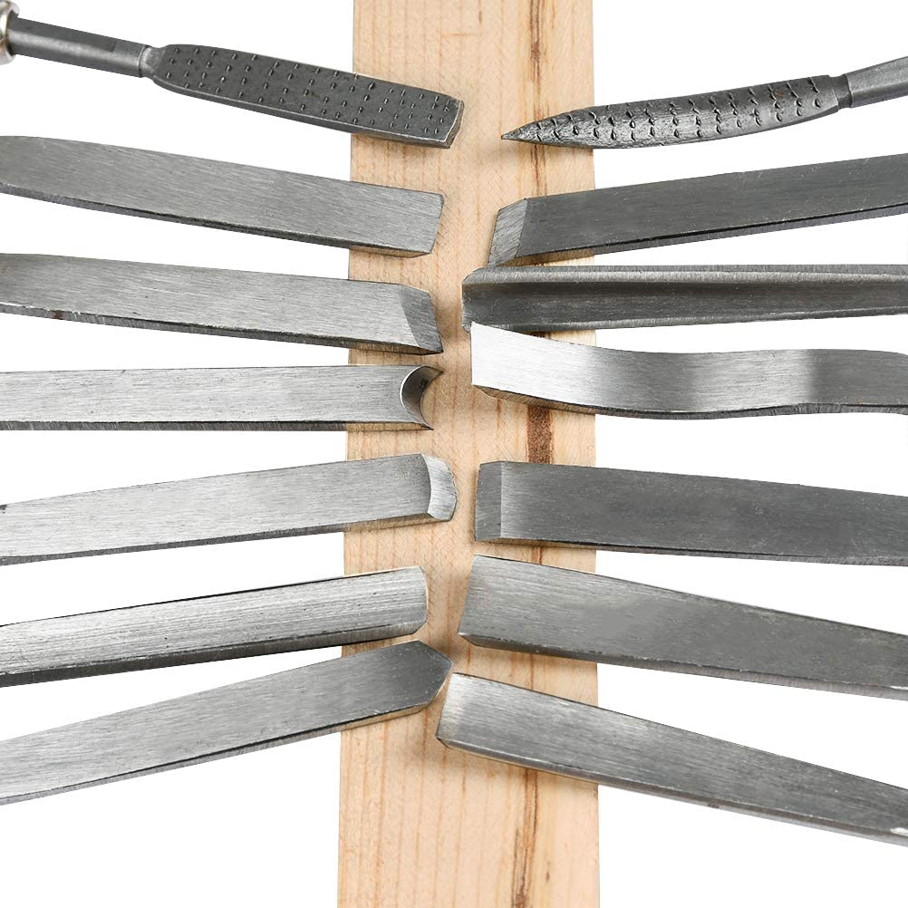 12 scalpelli per legno + 2 lime + 4 pezzi di olio di pietra, coltello per intagliare il legno, legno fai da te fai da te scalpello professionale intaglio lavorazione del legno.- I coltelli da intaglio sono in acciaio al manganese, resistenti all'usura e durevoli, possono soffrire di condizioni severe come impatto, estrusione, usura dei materiali e altro. Manico in legno di alta qualità , design ergonomico, resistente e morbido per una presa confortevole.