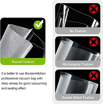 Design compatto : Bonsenkitchen Vacuum Sealer semplifica la conservazione degli avanzi, consentendo di risparmiare denaro, spazio e prevenzione degli sprechi. L scelta migliore per la tua cucina. - Funzione asciutta e umida: Funzione 2 in 1 supportata combinata con vuoto e sigillatura per alimenti secchi e umidi come carne, spuntini anche cibi in camicia, bolliti e al vapore. Design a doppio strato di tenuta: crea una tenuta ermetica con un esclusivo design a doppia guarnizione. Non c'è bisogno di preoccuparsi di problemi di perdite. È preferibile utilizzare il sacchetto sottovuoto professionale bonsenkitchen con vie aeree profonde e un buon effetto sigillante. Incluso: 5 sacchetti sottovuoto (20 x 30 cm), 1 tubo di aspirazione esterno, 1 guarnizione di ricambio.