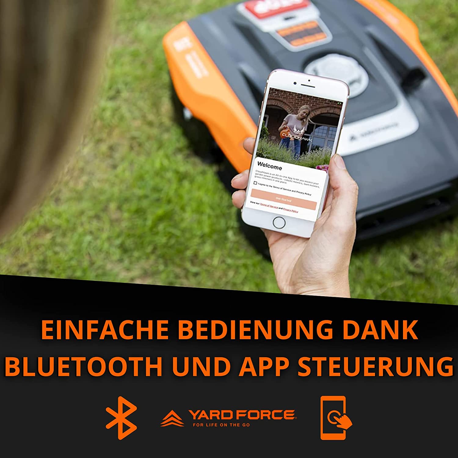 Tosaerba Robotizzato Fino a 300 mq, Semovente con Sensore a Ultrasuoni iRadar, Controllo Bluetooth e App, Motore Brushless - Batteria Ricaricabile 20V, 2.0 Ah - Celle agli ioni di litio con potente batteria da 20V, 2.0 Ah, larghezza di taglio; 160 mm; doppia protezione; sensore a ultrasuoni IRadar - Funzione di sicurezza attiva per il rilevamento di ostacoli a una distanza di 20-55 mm per evitare collisioni; sensore di inclinazione e sensore di collisione per una ottima protezione - Funzione di taglio ai bordi per mantenere il giardino pulito e ordinato; motore brushless per garantire prestazioni di taglio silenziose e potenti - Per un giardino sano; con il pratico sistema di pacciamatura, i fili d'erba vengono pacciamati e sparsi sul prato, lasciandoli come fertilizzante - Controllo Bluetooth; connessione diretta tra l'app e il tosaerba, ottima comodità di utilizzo; Yard Force può essere azionato fino a 50 metri di distanza.