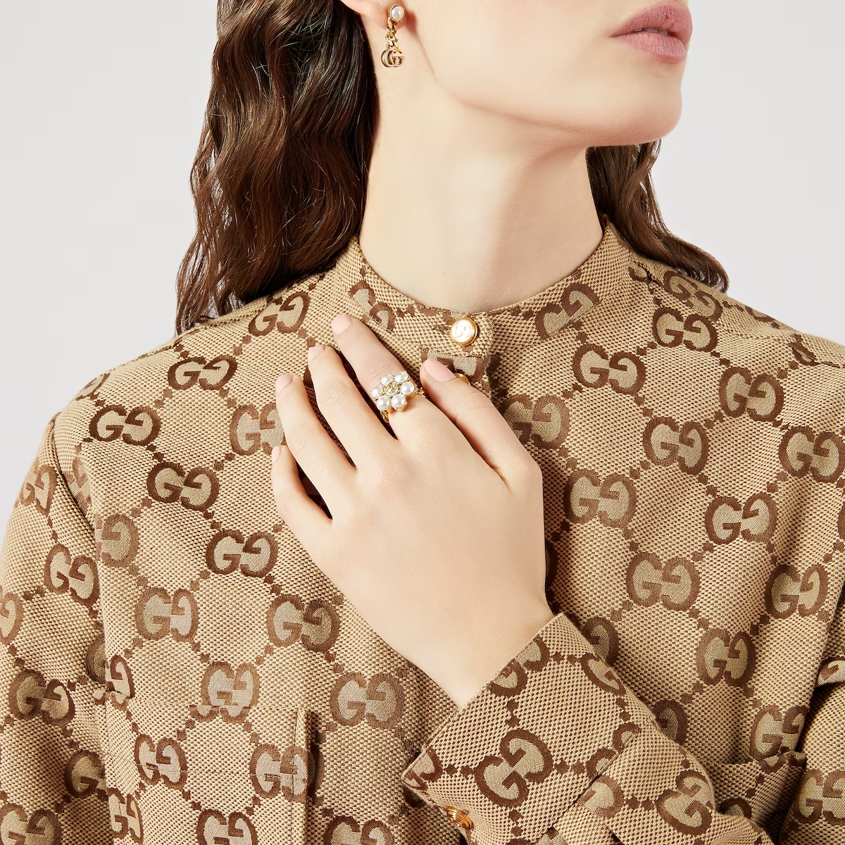 Anello doppia G e perle, Metallo con finiture color oro Doppia G con perle di vetro - Larghezza: 20 mm - Made in Italy - Gucci garantisce, al proprio interno e nella propria filiera, il rispetto degli standard di Responsabilità Sociale e Ambientale in coerenza con la sua strategia di sostenibilità