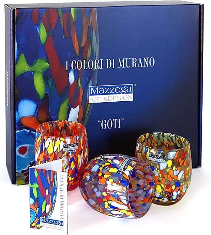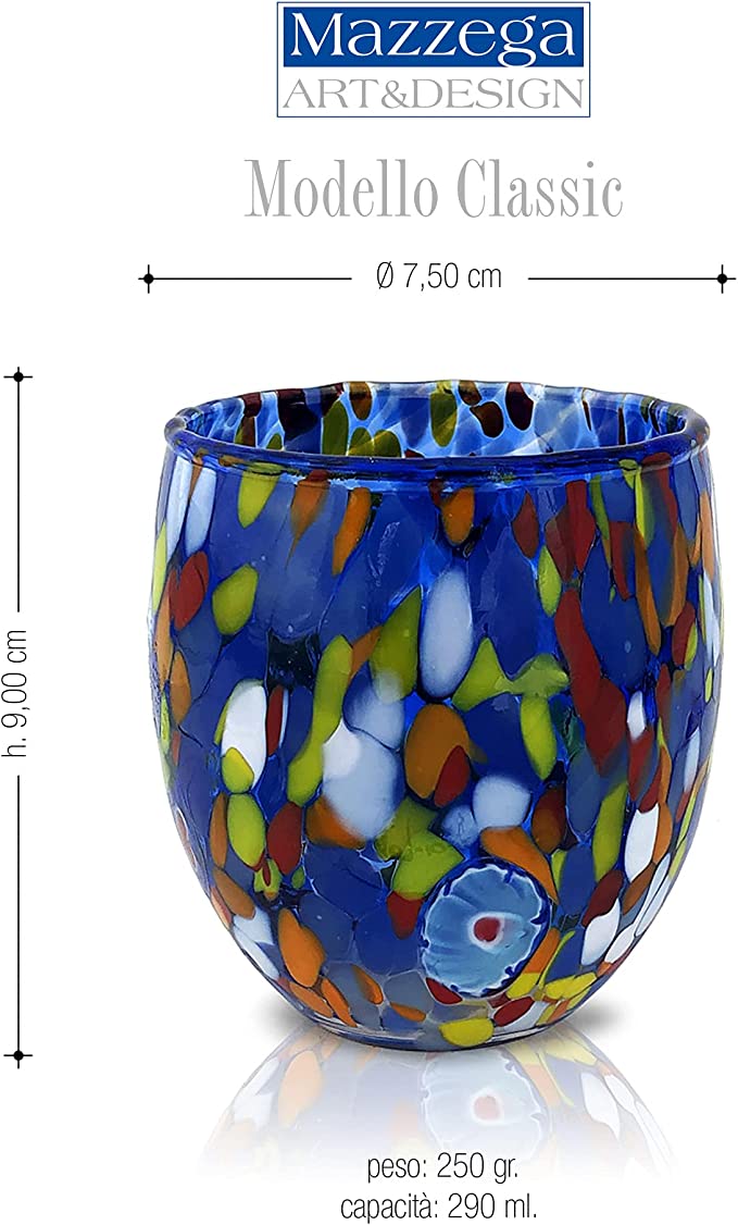 Questo set di 6 bicchieri in vetro di Murano è prodotto interamente in Italia secondo l'antica tradizione della lavorazione del vetro, interamente lavorato a mano da maestri Vetrai - Lavabile in lavastoviglie in quanto colore e lucentezza restano inalterabile nel tempo - Realizzati secondo le antiche tecniche dei maestri vetrai di Murano - Sono impacchettati da imballatori professionisti del settore vetro. Le confezioni sono assemblate in cartone ondulato a doppio strato e rinforzate in modo tale da resistere alla movimentazione in fase di consegna