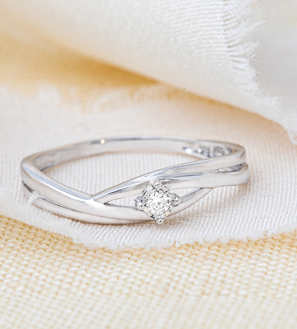 Anello solitario Nido Prezioso - Daria - Oro bianco - Diamante 0.03 carati - 9 carati - Un diamante solitario abbracciato con delicatezza ed eleganza dall'oro bianco Un anello di fidanzamento delicato e femminile. 1 diamante: 0.03 carati - Oro bianco (9 carati= 375/1000): 1.2 g.