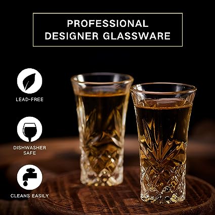Dimensioni: altezza di 8,6 cm. Base pesante e forma a shottino di vetro fantasia, facile da tenere in mano, il rapporto dorato è più ergonomico e più confortevole. Qualità: bicchieri senza piombo, sicuri da usare in lavastoviglie. Confezione: Ogni prodotto è stato ispezionato singolarmente e sottoposto a trattamento anti-goccia per garantire che il prodotto possa arrivare perfetto.La capacità 60 ml è perfetta per whisky, vodka, tequila, cordiali, espresso, dessert e liquori. Ideali per casa, bar, hotel, ristorante, resort e locali notturni. Il set di bicchieri da shot aggiunge un tocco glamour