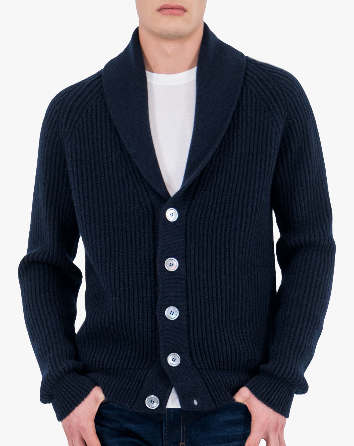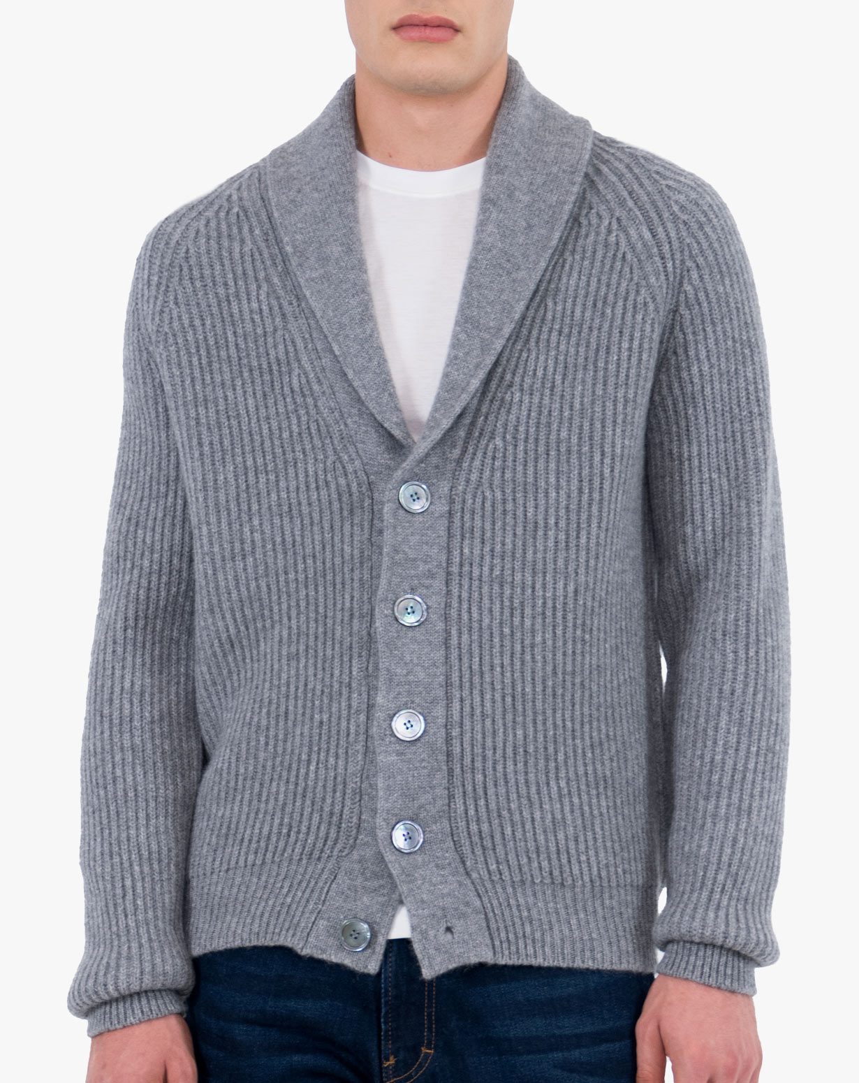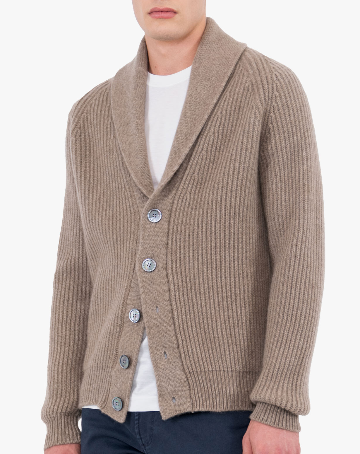 Cardigan Uomo Coste Inglesi in 100% Cashmere -Vestibilità normale, seleziona la tua vera taglia - Il modello è alto 188cm e indossa la taglia L - Spessore alto, collo a scialle, lavorazione coste inglesi - Questo maglione giacca in puro cashmere, estremamente morbido e caldo, ti veste con la sua linea sobria ma particolare. Realizzato con una lavorazione a coste inglesi, presenta un collo scialle a maglia liscia che termina con l’abbottonatura in madreperla dal carattere ornamentale. Particolare il motivo della spalla con il suo taglio raglan e ben rifinita al fondo e ai polsi con bordi leggermente contenitivi. Un modello chic pur restando informale. Filati Biagioli Modesto - Titolo: 2/28 - Spessore: 5gg - Alto