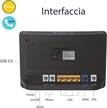 Tp-Link Archer Vr1210V Modem Router Evdsl Fino A 300Mbps, Wi-Fi Ac1200Mbps Dual Band, Telefonia Fissa E Voip, 5 Porte Gigabit, Beamforming, Mu-Mimo, Nero, 20 x 20 x 20 cm; 500 grammi - Scarica il PDF in : Guida dei prodotti e documenti per accedere alla guida alla configurazione. Cerca: configurazione internet e telefonia sul sito tp-link per una guida dettagliata alla configurazione di TIM, WIND TRE, TISCALI, FASTWEB e VODAFONE Archer VR1210v è un modem in fibra di tp-link iper connessioni oltre i 100 Mbps, sostituire il modem fornito dall'ISP per usufruire di una connessione rapida fino a 300 Mbps - Connettività FR (EVDSL) fino a 300Mbps – Profilo 35b, compatibilità con gli standard VDSL2/ADSL2+/ADSL2/ADSL - Connettività F (Fibra FTTH) fino a 1Gbps – Porta WAN Gigabit per la connettività con modem via cavo o terminale a fibra ottica, compatibile con la fibra di Tiscali ed altri operatori - Wi-Fi Dual-Band AC1200 – Due bande Wi-Fi combinate per velocità fino a 300Mbps (2.4GHz) e 867Mbps (5GHz) - Telefonia fissa e VoIP – Gestisci comodamente le chiamate su linea fissa e account di telefonia VoIP dai tuoi telefoni fissi - Temperatura di funzionamento: 0℃~40℃(32℉~104℉)