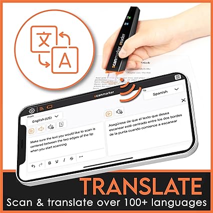 Scanmarker Air Penna Scanner - Evidenziatore Digitale, Penna Lettura e Traduttore - Wireless (Mac Win iOS Android) - Crea riassunti più velocemente che mai; ti basta far scorrere la penna scanner portatile su una riga di testo stampato per vederla apparire immediatamente sullo schermo - Scanner di testo ocr multilingue estremamente preciso e veloce, ideale per studenti e professionisti in biblioteca, in ufficio o in viaggio - Usa la tua penna scanner per scansionare direttamente testo modificabile in qualsiasi applicazione su computer, per esempio Microsoft Word, o nelle nostre app mobile intuitive - Modifica, leggi ad alta voce in tempo reale e traduci su computer, smatphone e tablet; compatibile con desktop Mac e Windows oltre che con dispositivi mobili Android e iOS Portatile, leggera e conveniente - collegala con facilità a tutti i tuoi dispositivi tramite Bluetooth (chiavetta BLE inclusa per il collegamento wireless a Windows). Potente batteria integrata ricaricabile tramite USB