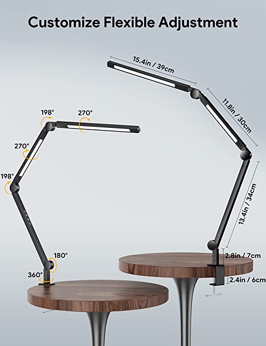 Lampada da Tavolo con protezione Degli Occhi - Doppia Sorgente Luminosa - Lampada da Scrivania con Morsetto, Touch Control, 4 modalità di colore, 4 Livelli di Luminosità, snodabile - Dimensioni del prodotto 44.6P x 34.4l x 5.3H cm - Questa lampada da tavolo oscillante con morsetto fornisce una potenza di 12 W, senza sfarfallio, senza abbagliamento e senza raggi ultravioletti - Il corpo girevole multi-articolazione e l'ampia testa girevole offrono una scelta multipla: lampada rotante a 270°, base rotante a 360°, braccio in metallo regolabile a 200°, puoi regolare liberamente la direzione della luce, gli angoli, la lunghezza, e le posizioni