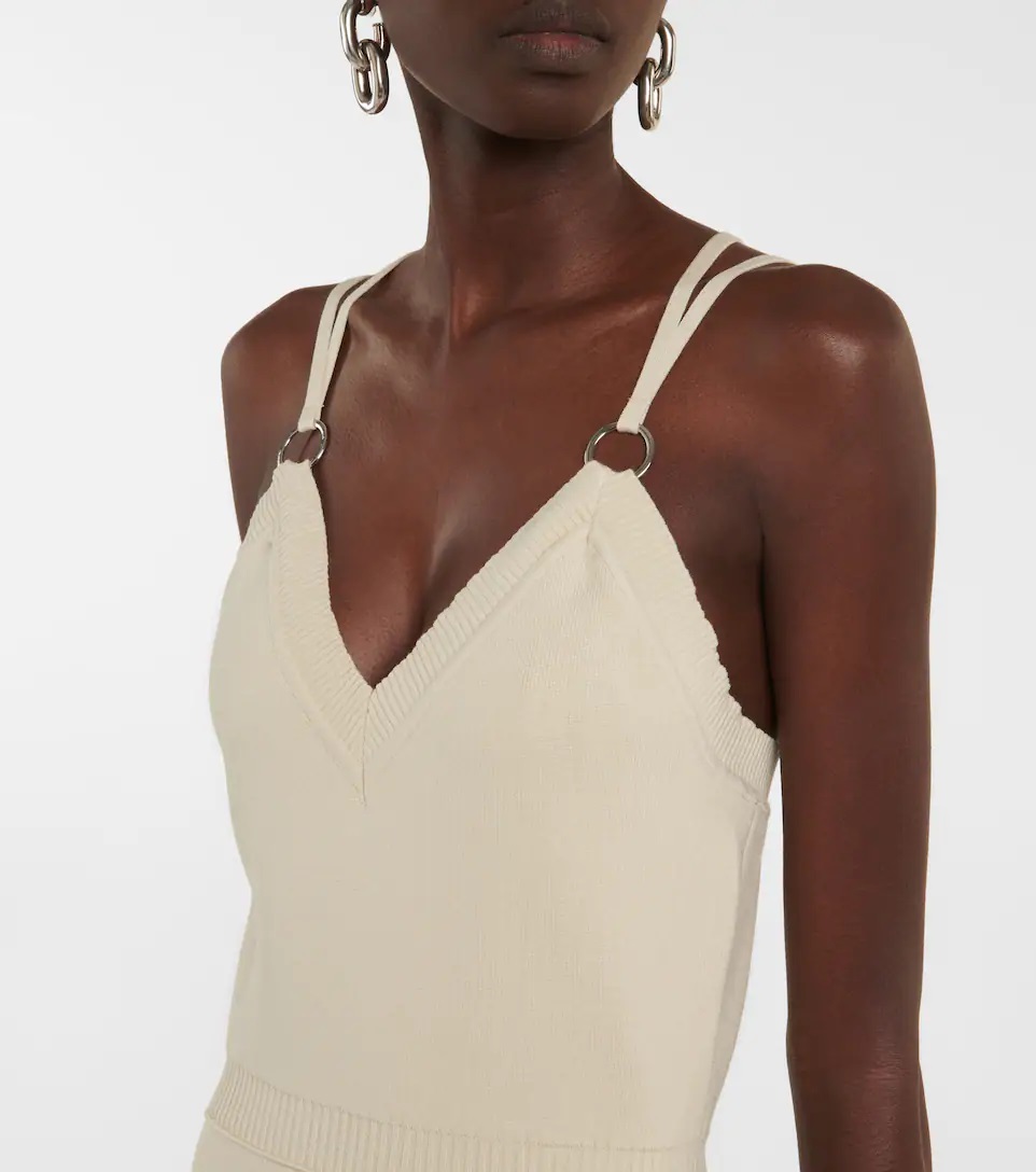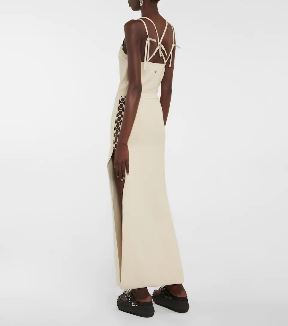 PACO RABANNE: Abito midi in maglia con cristalli - Questo abito midi di Paco Rabanne è stato creato per la donna moderna, sicura di sé. Il design in maglia è definito da un dettaglio a coste in vita e da numerosi anelli ai lati per un look deciso e grintoso. 70% viscosa, 30% poliestere - lavaggio in lavatrice a 40° - Spalline annodabili - Vestibilità conforme alla taglia indicata - Taglio sartoriale - Tessuto pesante - Tessuto stretch - Lunghezza spacco 74cm - La modella nella foto è alta 178 cm e porta la taglia XS