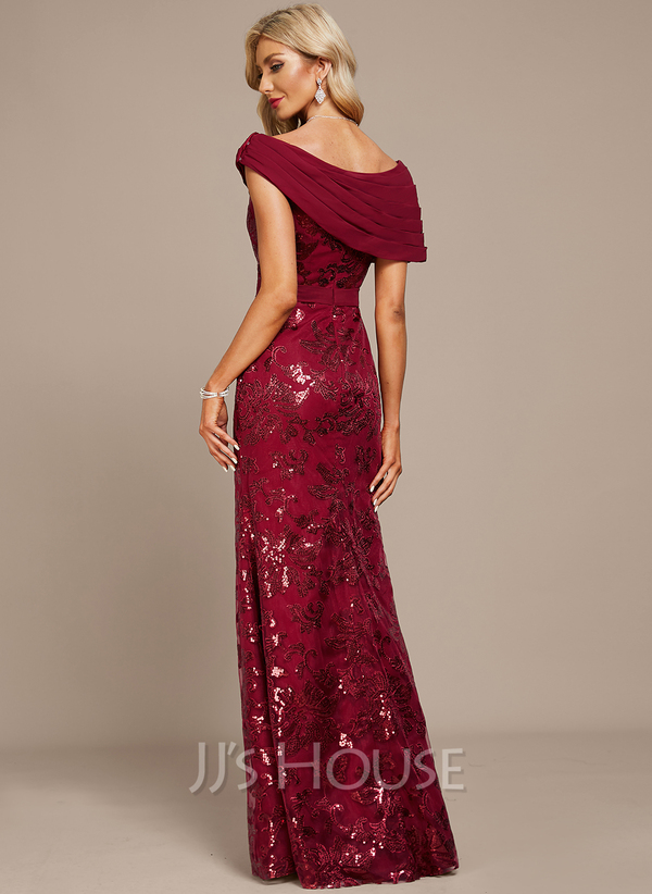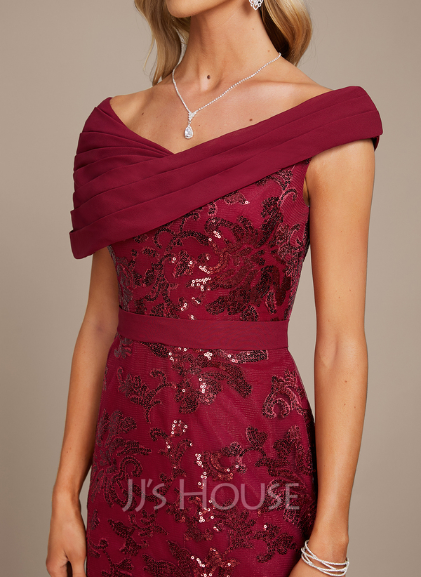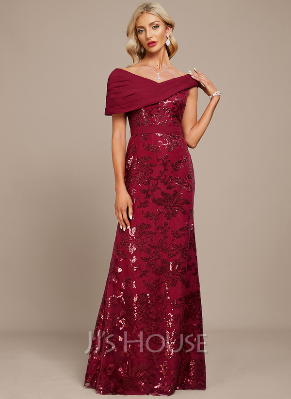 Tubino - Spalle scoperte - a terra - Chiffon con lustrini - Abito da sera con pieghettato -
