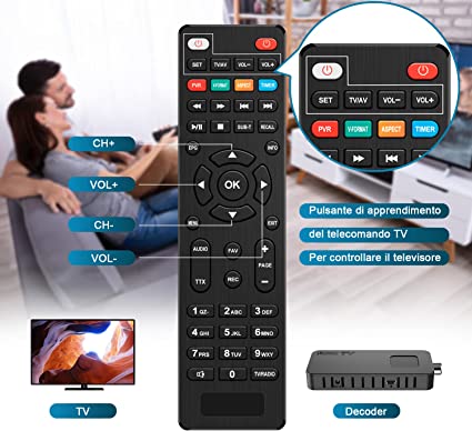 Mini Stick HDMI HD1080P H.265 HEVC 10 Bit, Supporto Dolby Audio e Multimedia USB/PVR - Telecomando 2 in 1 Incluso - supporta il full HD1080p Hevc H.265 10bit, basta collegare il decoder direttamente alla porta HDMI del televisore, per godersi facilmente i canali DVB-T2/DVB-C HD gratuiti. La chiavetta nano HDMI è compatibile con tutti i sistemi TV con presa HDMI, si alimenta tramite la porta USB- Collega il decoder e puoi anche registrare qualsiasi programma TV e riprodurlo; supporta MP3, JPEG, BMP, AVI, DivX, VOB, MKV, AC3 e molti altri