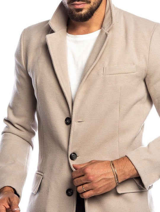 CAPPOTTO MONOPETTO SEATTLE - Colore: beige - 93% poliestere, 5% viscosa, 2% elastan - Monopetto - Rever classico - Taschino sul petto - Due tasche con patta cucite chiuse - Made in Italy - Vestibilità slim - Il modello indossa la taglia 50 ed è alto 185 cm