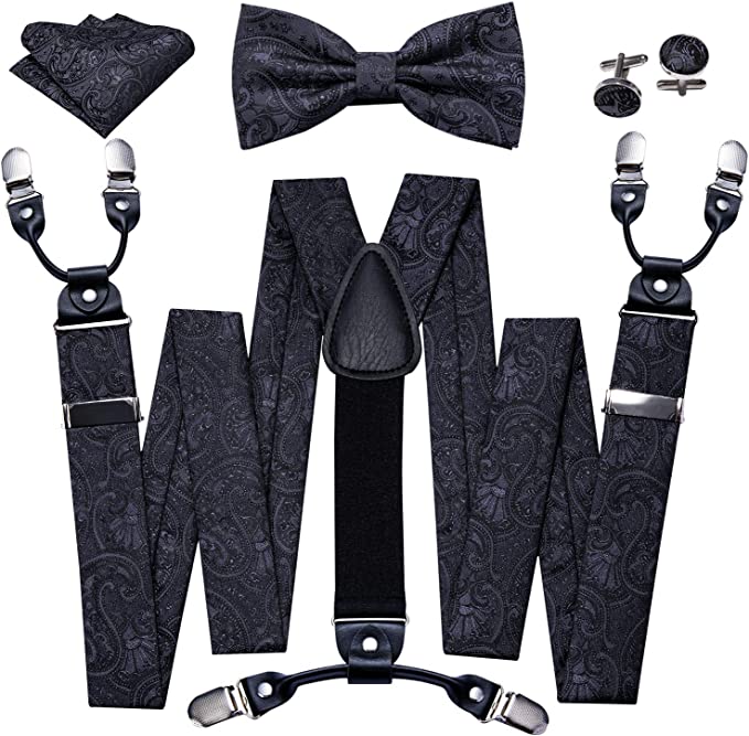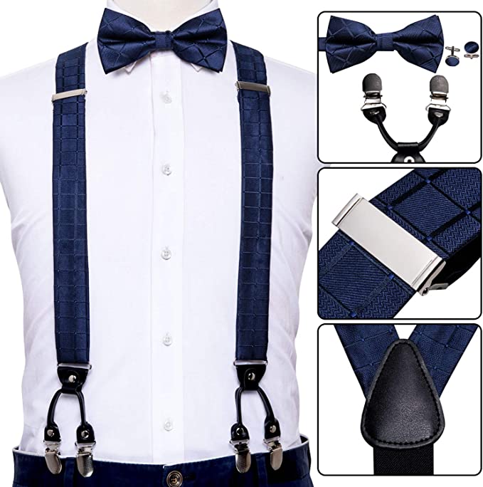 Set con bretelle, gemelli e papillon da uomo - in seta intrecciata - regolabili