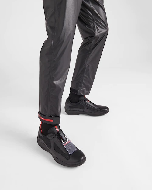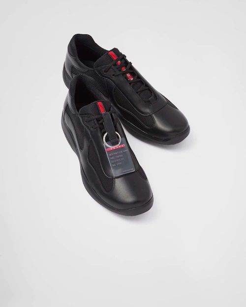 Sneakers Prada America’s Cup Original - Parte dell'identità di Prada, la sneaker America's Cup disegnata negli anni '90 per l'equipaggio Luna Rossa è riproposta con un design che riprende linea, dettagli e materiali del modello originale. Pelle morbida ma al contempo resistente e innovativo tessuto bike traspirante si combinano in questa silhouette stringata ispirata al mondo della vela, completata da una voluminosa suola in gomma. Il logo Prada Linea Rossa aggiunge una nota iconica e si combina con la nuova etichetta 'Beyond the Line' rimovibile. - In pelle e tessuto bike - Stringata - Suola bimateriale con disegno lente - Battistrada con isole in gomma disegno lente - Altezza suola 35 mm - Sottopiede estraibile rivestito in pelle scamosciata - Logo Prada Linea Rossa sulla linguetta - Tag rimovibile 'Beyond the Line' che indica la stagione in cui il modello originale fu introdotto nelle collezioni Prada