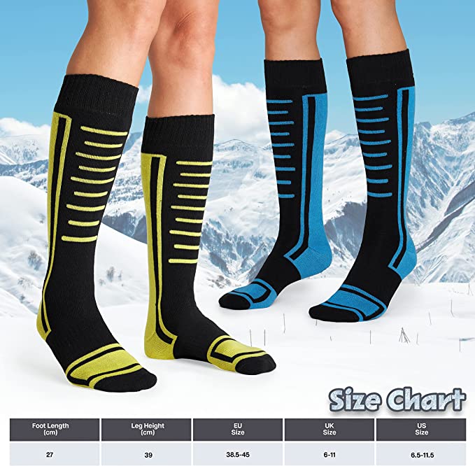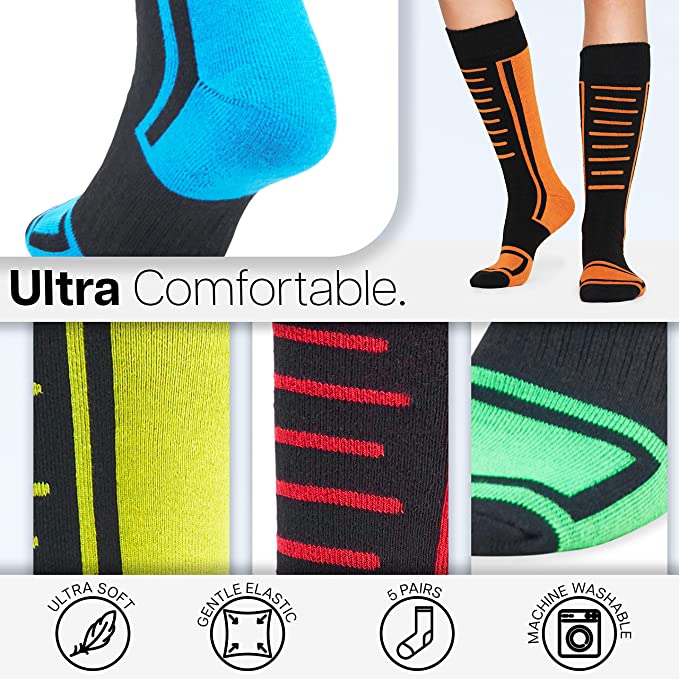 CityComfort - 5 PAIA - 77% Poliestere, 20% Cotone, 3% Elastan - Calze da sci traspiranti uomo/donna - Calze lunghe in taglia unica per piede da 39 a 45
