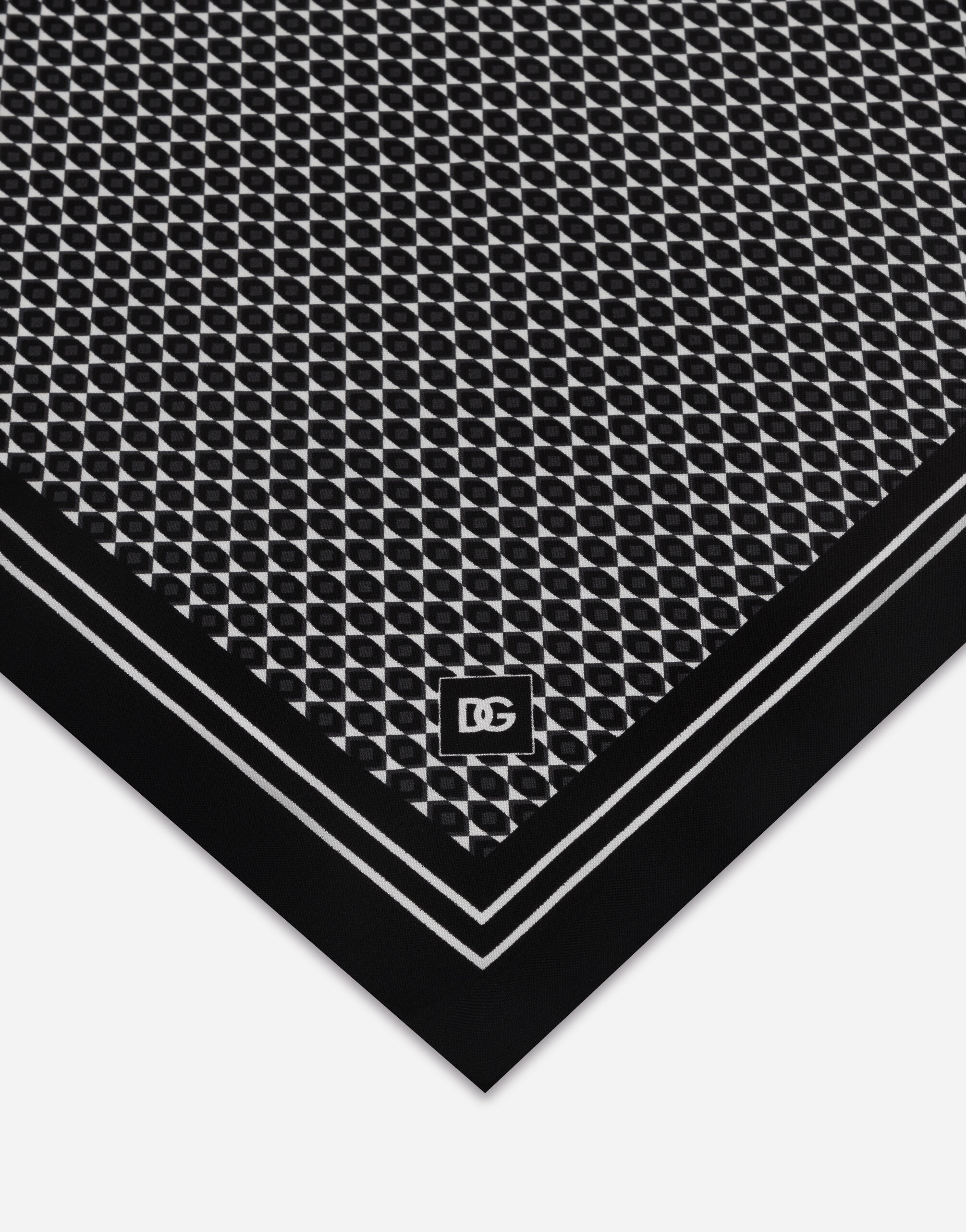 Pochette seta stampata - Una nuova collezione di accessori realizzata con sete e cotoni, uniti e stampati. Nuovo logo DG in metallo o ricamato per rendere il proprio look ancora più speciale. Pochette realizzata in twill di seta stampata: Logo stampato • Misure: 33x33 • Made in Italy - Composizione esterna: 100% Seta