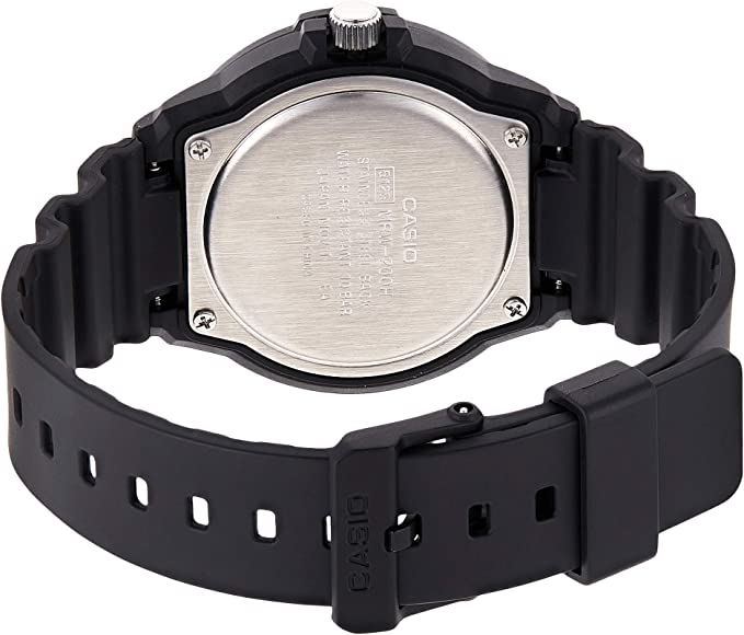Rivestimento fluorescenti per le lancette e/o le cifre -Indicatore della data e del giorno settimanale - Cassa e cinturino in resina di tipo sintetico - Resistente all'acqua fino a 100 metri - Resistenza della batteria per circa tre anni