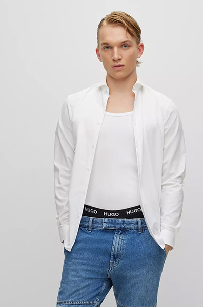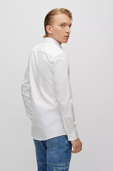 CAMICIA EXTRA SLIM FIT IN POPELINE DI COTONE CON COLLETTO ALLA FRANCESE - Una camicia di tendenza HUGO Uomo dalla vestibilità slanciata. Realizzato in elegante popeline di cotone, questo modello business è rifinito dal colletto alla francese e da un'etichetta interna nel rosso tipico del marchio. Indossa questa camicia con o senza cravatta per un approccio moderno all'abbigliamento professionale. Extra slim fit - Colletto aperto - Polsini dritti - 100% Cotone