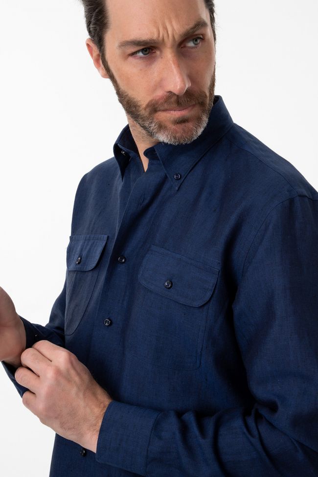 Camicia Uomo Aplomb Classic - Tinta unita - 100% lino - collo - Button down - Manica lunga