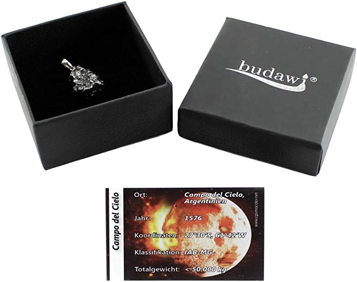 Peso del meteorite circa 3-4 g. Spirale con diametro di circa 20 mm. Lunghezza catena: circa 47 cm. La carta include il certificato di autenticità per il luogo di ritrovamento e l’anno di base - Immagine campione; le pietre sono un prodotto naturale e possono variare nel colore e nella forma