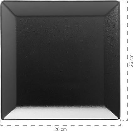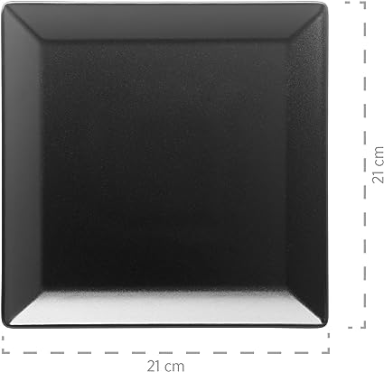 Set di stoviglie in porcellana per 6 persone, composto da 6 piatti da dessert da 21 x 21 cm e 6 piatti piani da 26 x 26 cm in nero.. La serie Manhattan City è realizzata in robusta porcellana e convince per l'alta qualità. Il servizio da tavola è il complemento perfetto per i set di piatti e ciotole della serie Manhattan City.. La bella forma rettangolare e la porcellana senza motivo invita a una bella decorazione con cibo! L'intera serie è lavabile in lavastoviglie e adatta al microonde.
