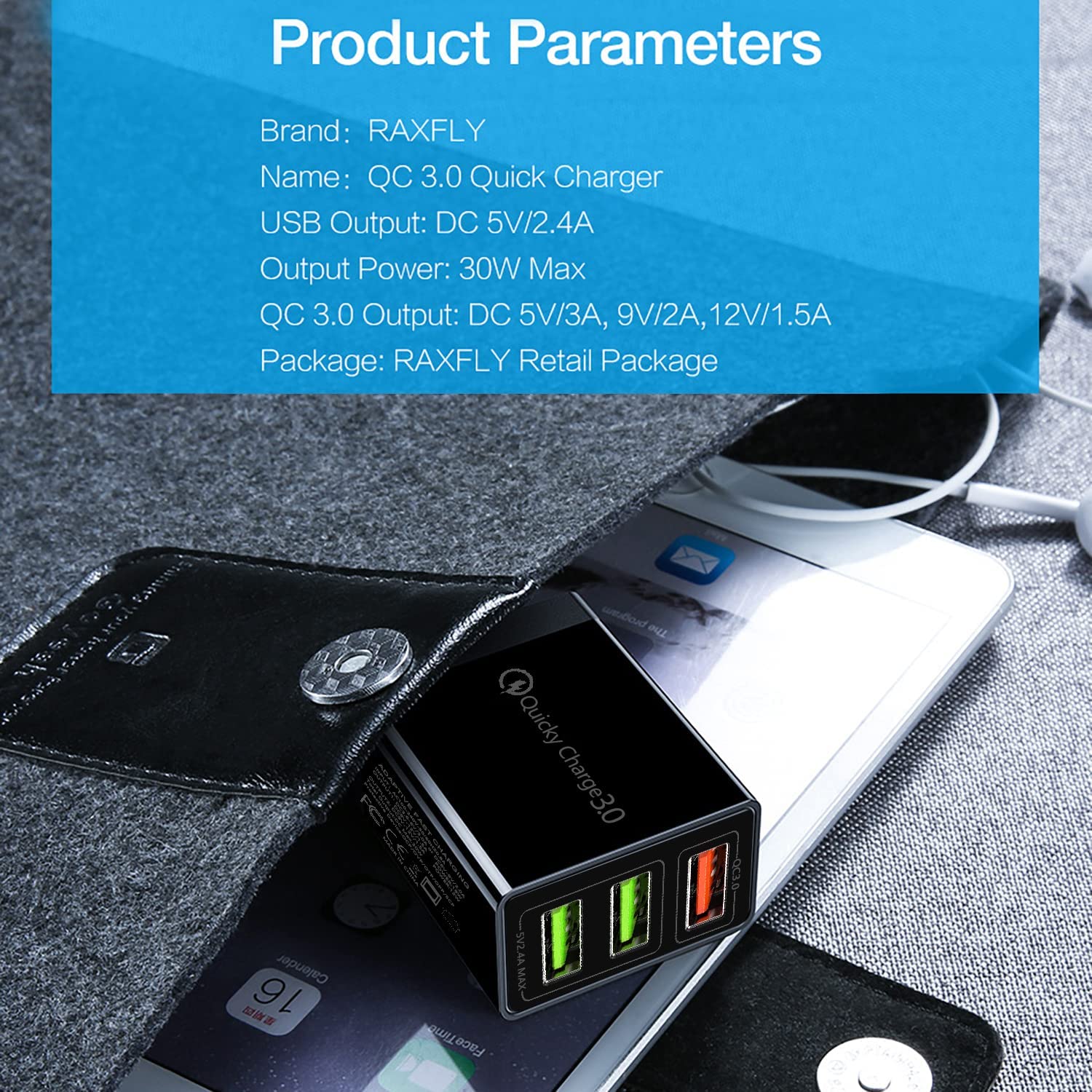 Il caricabatterie di ricarica USB QC 3.0 offre l'efficienza di ricarica più rapida fino all'80%, 4 volte più veloce dei caricabatterie convenzionali, può caricare il dispositivo dallo 0% all'80% in 40 minuti, risparmiando tempo e massimizzando l'efficienza di carica. Retrocompatibile da QC 1.0 2.0