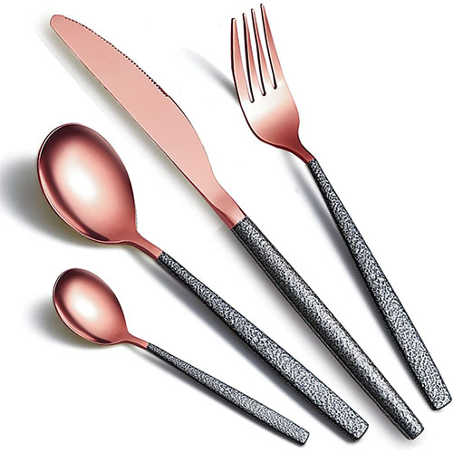 Set di posate rosa 6 persone 24 pezzi