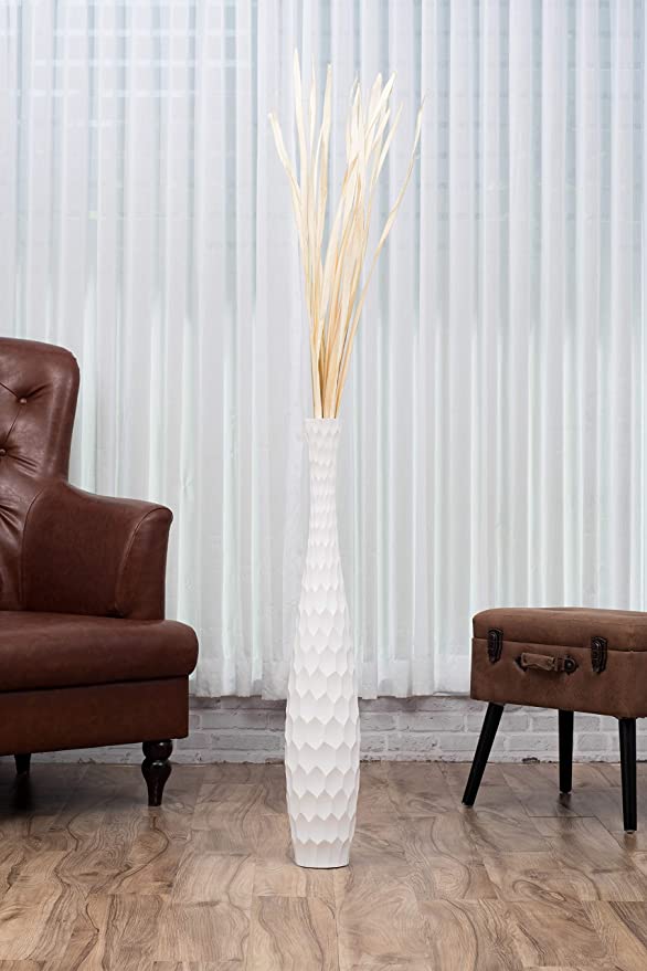 Fatto a Mano in Legno di Mango, Vaso per Rami Decorativi, 90 cm, Bianco - L'elegante vaso in legno ha una forma particolare ed è perfettamente adatto come decorazione del pavimento. Diametro del vaso: 15 cm, apertura: 4 cm; altezza: 90 cm - Il vaso è realizzato in materiale naturale al 100 % - Il legno di mango utilizzato è di alta qualità ed è stato lavorato a mano in modo che ogni vaso sia unico