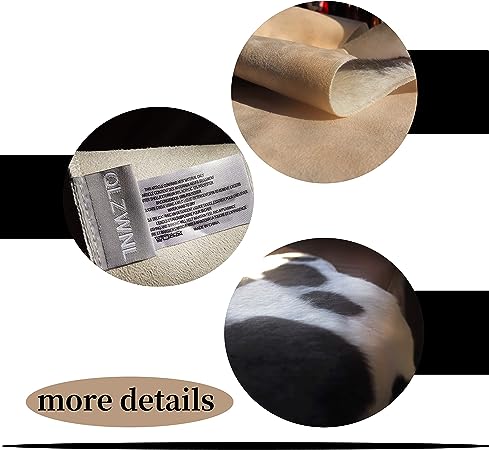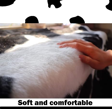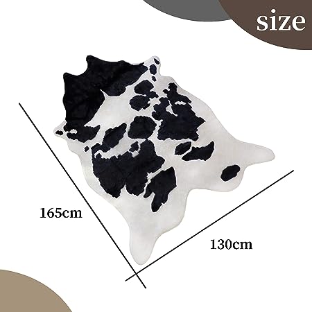 165x130 cm - Materiale di alta qualità: il tappeto in finta pelle bovina è realizzato in materiale in fibra di poliestere di alta qualità, che assorbe l'umidità e traspirante, sano e sicuro, confortevole e durevole, antiscivolo e resistente all'usura. Il pelo è lungo circa 1,5 cm, super morbido e confortevole, adatto a tutte le stagioni.