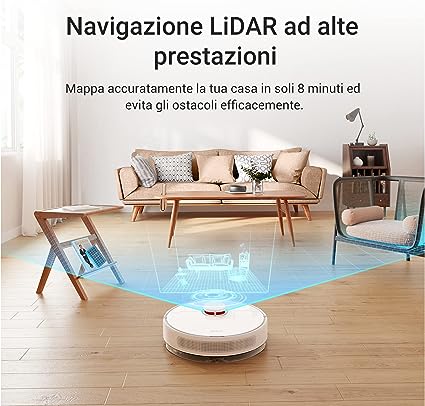 Aspirapolvere auto pulente - Robot intelligente con base per lo smaltimento automatico dello sporco - Mop e aspirapolvere in uno - Certificazione: CE Weight(1 device with package): 11kg - Dimensions (1 Packing Box): 40.9*39.7*42.6cm - Voltage (V): 14.4V - Battery Capacity: 3000mAH Lithium-ion - Capacity: 300ml - Intelligent Water Tank Capacity: 250ml - Smart Memory - Smart Wet Mopping