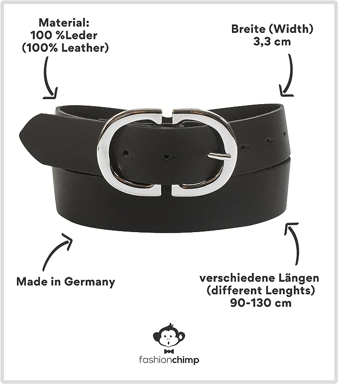 Cintura in pelle con elegante doppia chiusura, larghezza circa 3,3 cm, made in Germany