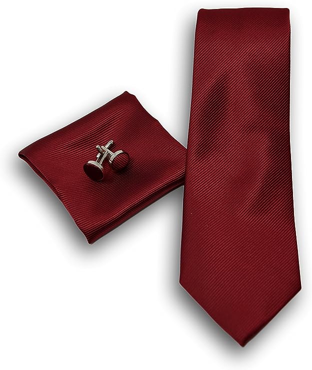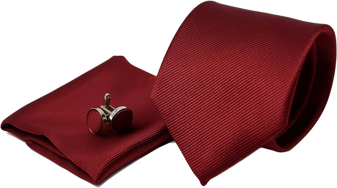 Cravatta da uomo, fazzoletto da taschino e gemelli in seta di alta qualità. Questa cravatta, fazzoletto da taschino e gemelli sono realizzati artigianalmente con la massima cura. Le loro cuciture robuste e l'eccezionale tessitura garantiscono una qualità che durerà per anni. Questo modello di lusso, con un design elegante e sofisticato, adattato a tutti gli stili, formale o informale.