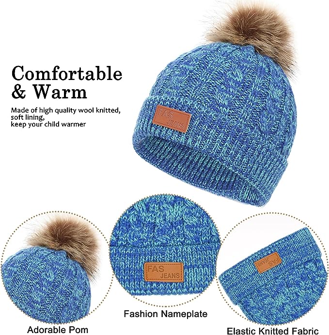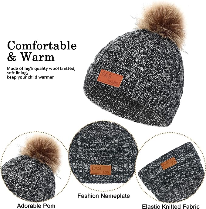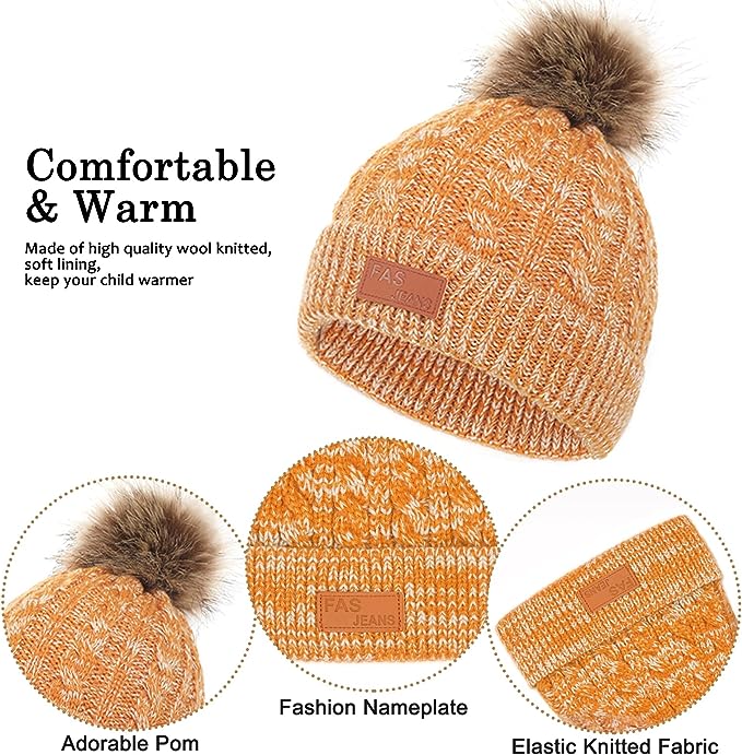 Cappello a Maglia Bambini Invernale, Sciarpa e Guanti + Scaldacollo. Ragazzo Ragazza 2-8 Anni Taglia unica