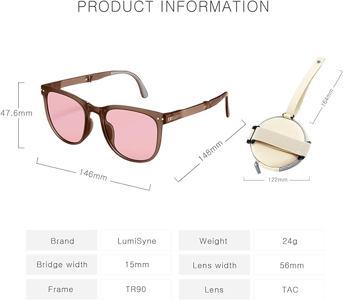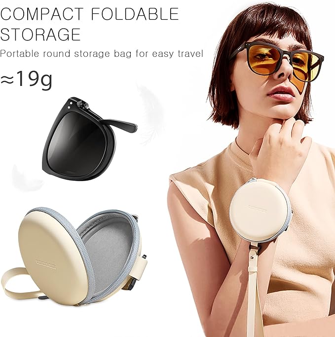 Gli occhiali da sole sono occhiali da sole completamente pieghevoli. Il giunto pieghevole fine a punto fisso in tre fasi può ottenere facilmente una piegatura direzionale di 90° e supportare l'uso a lungo termine senza deformazioni. Gli occhiali da sole sono dotati di un organizer rotondo che può essere tenuto in mano o legato alla tua mano. È comodo da riporre e trasportare e anche una pratica decorazione alla moda - PROTEZIONE UV: Questi occhiali da sole utilizzano lenti polarizzate, protezione UV400 al 100%. La tecnologia del filtro a sette strati blocca efficacemente i raggi ultravioletti e protegge gli occhi da forti danni alla luce. Le lenti polarizzate possono eliminare l'abbagliante luce diffusa, svolgere efficacemente la funzione antiriflesso e alleviare l'affaticamento visivo con un campo visivo più chiaro e morbido. VANTAGGIO DEL MATERIALE: Questa lente per occhiali da sole adotta lenti TAC ad alta definizione e la montatura è realizzata in materiale TR90 ultraleggero. L'obiettivo TAC ad alta definizione può ripristinare il vero colore, in modo che chi lo indossa non abbia la sensazione di distorsione della scena o vertigini. La montatura ultraleggera riduce notevolmente il carico sul ponte del naso e delle orecchie e offre un'esperienza di utilizzo leggera. La sua super tenacità lo rende più resistente.