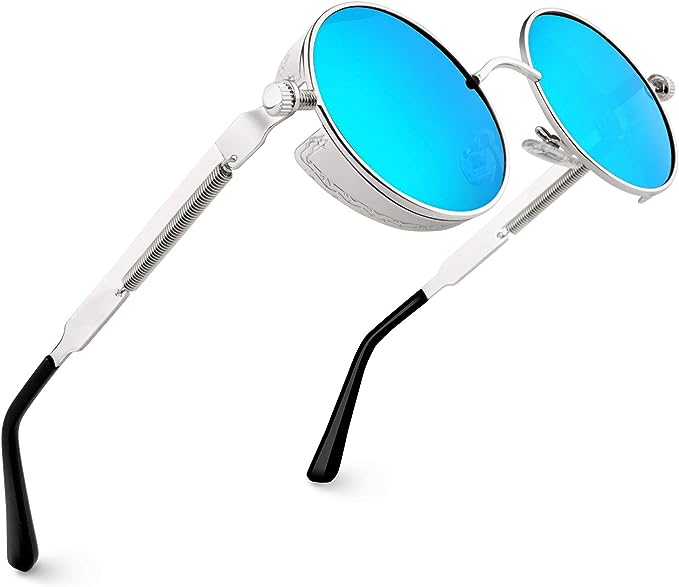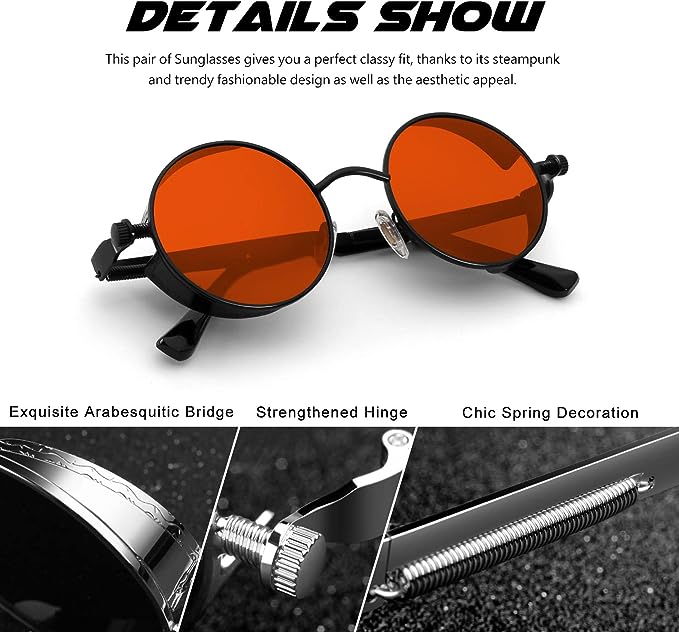 Dotati di protezione UV400 per bloccare al 100% i dannosi raggi UVA e UVB. Inoltre, le lenti polarizzate riducono l’abbagliamento dalle superfici orizzontali come strade, acqua e neve, offrendo un ripristino dei colori reali eliminando la luce riflessa e diffusa per una protezione ottimale degli occhi. Steampunk - DIMENSIONI Altezza della lente: 46MM (1,81 pollici) - Larghezza della lente: 46MM (1,81 pollici) - Lunghezza del tempio: 145MM (5,71 pollici) - Ponte del naso: 20MM (0,79 pollici) - Lunghezza della montatura: 135MM (5,31 pollici).