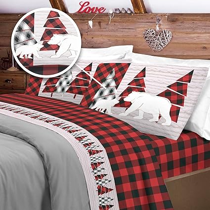 PENSIERI DELICATI Completo Letto Matrimoniale 100% Cotone, Completo Lenzuola Matrimoniali 180x200 Comprensivo di Lenzuolo Sotto, Sopra e 2 Federe, Made in Italy, Fantasia Canada Rosso