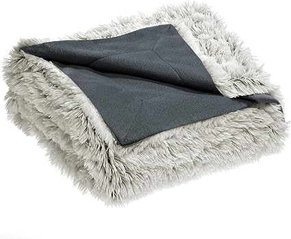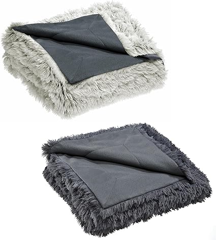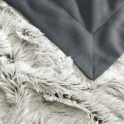 Cm 220 x 240 - Coperta double face straordinariamente morbida con effetti Flokati simil agnello e pelo lungo bianco sul lato superiore e caldo pile sul lato inferiore.