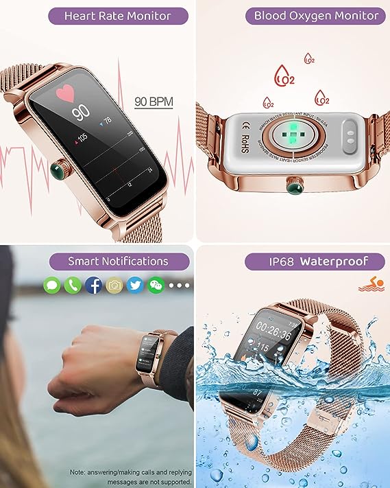 L'orologio intelligente BOCLOUD adotta un nuovo quadrante rettangolare e un touch screen a colori da 1,4 pollici mostra maggiori informazioni; prepariamo anche molti bellissimi quadranti per te nel mercato dei quadranti APP; naturalmente, puoi anche personalizzare lo sfondo del quadrante e impostare le informazioni che desideri visualizzare sullo schermo; BOCLOUD è completamente personalizzato per te, crea solo l'orologio intelligente che ti piace! - L'orologio fitness BOCLOUD supporta 12 modalità sportive allenament o /yoga / palestra / moto / ellittica / vogatore / oscillazione, in grado di monitorare il tuo percorso di allenamento, passi, distanza, calorie bruciate, frequenza cardiaca, ecc. e registra i tuoi dati sportivi. Lo smartwatch BOCLOUD mostra notifiche di chiamate, messaggi ed e-mail in tempo reale, tra cui Facebook, Twitter, Instagram, WhatsApp, ecc., in modo da non perdere notifiche importanti. Ha anche altre funzioni di promemoria, come promemoria sedentario, promemoria acqua, allarme alta pressione/frequenza cardiaca alta, ecc. - Con solo 2 ore di ricarica, l'orologio intelligente BOCLOUD può raggiungere fino a 30 giorni di standby o 5-7 giorni di lavoro, molto più a lungo della maggior parte degli orologi intelligenti. Supporta anche la resistenza all'acqua IP68, che ti fa non temere l'acqua quando ti lavi le mani, fai una doccia o nuota, ecc. - L'orologio intelligente BOCLOUD può monitorare la frequenza cardiaca, la pressione sanguigna, l'ossigeno nel sangue, la respirazione, ecc. Può anche monitorare lo stato del sonno, monitorare la cronologia del sonno e impostare obiettivi di sonno, che possono aiutarti a comprendere meglio le tue condizioni di salute e regolare il tuo stile di vita in modo ragionevole. - BOCLOUD dispone di molte utilità di vita, come gioco, meteo, foto, controllo della musica, calcolatrice, sveglia, cronometro, conto alla rovescia, torcia, telefono, ecc., in grado di soddisfare le vostre molteplici esigenze quotidiane.