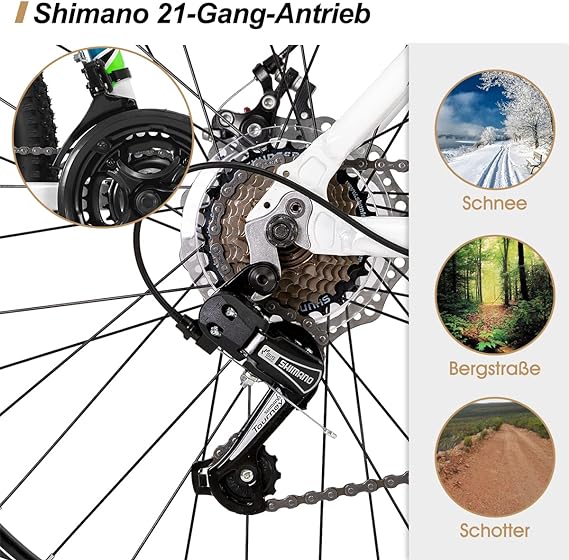 Il leggero telaio in alluminio è completo di funzioni che migliorano la guida. Le buone prestazioni della forcella ammortizzata lo rendono valida sia per i nuovi piloti che per gli esperti shredder - Trasmissione Shimano a 21 marce, una vasta gamma di marce ti dà maggiore controllo durante l'arrampicata, per la stanza per entrare in profondità in discesa, curve e salti. Premontata all'85%, facile da montare, strumenti di montaggio necessari inclusi. Si prega di non montare la forcella al contrario.- La bici da 27,5 pollici è adatto per persone con una statura da 170 cm a 190 cm