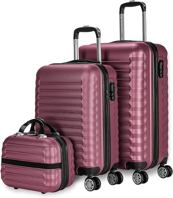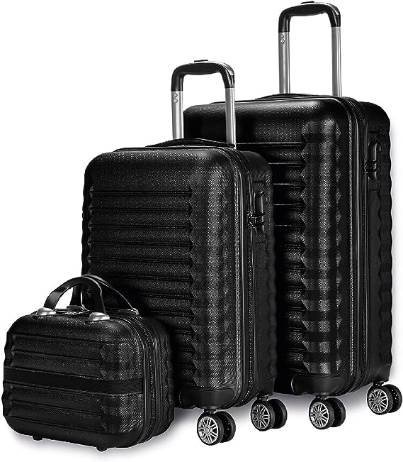 Set di valigie rigide: Viaggia dove e come vuoi grazie alle sue 2 dimensioni; Valigia da cabina (53 x 33,5 x 22 cm. / Capacità: 34,5 l/2,26 kg. / Peso massimo : 13 kg. ), valigia media (63 x 39,5 x 26,8 cm. / Capacità: 60 l/2,75 kg. / Peso massimo : 18 kg. ); e beauty case (misura: 31 x 31 x 17 cm. / Capacità: 11 l. / 0,66 kg. / Peso massimo : 5 kg Realizzato in ABS ECO FRIENDLY: il set di valigie è realizzato in ABS riciclato del 60%, risparmiando così fino a 54 bottiglie di plastica da 1,5 litri per set. L'ABS si distingue per la sua perfetta combinazione tra leggerezza e perfetta capacità di assorbimento degli urti ricevuti, soprattutto a basse temperature. Massima sicurezza e comfort. Il set di valigie da viaggio dispone di una chiusura a combinazione laterale a 3 cifre, oltre a 4 ruote doppie a rotazione multidirezionale che su superfici lisce scivolano delicatamente accompagnando lo spostamento. Maniglia a doppio tubo e maniglia: set di valigie con manico telescopico in alluminio estensibile a 3 livelli e maniglia superiore per manovrare rapidamente in spazi ristretti. Massimo comfort in qualsiasi posizione. PRATICO INTERNO COMPARTIMENTATO: interno con fodera con cinghie elastiche di fissaggio regolabili e uno scomparto con cerniera per massimizzare la capacità del set di valigie da viaggio. Conserva una valigia da un'altra per risparmiare il massimo spazio.